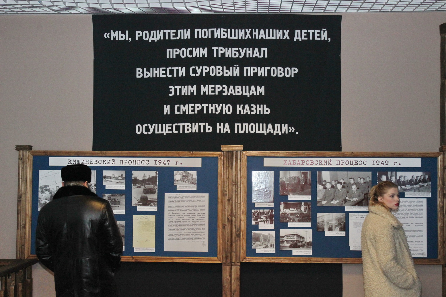 По наиболее жестоким и масштабным преступлениям были проведены открытые суды в Краснодаре, Харькове, Смоленске, Киеве, Риге, Сталино (Донецке), Севастополе и других городах. Экспозиция рассказывает, как велось расследование, какие приговоры выносились нацистам и как высшее руководство страны следило за этим процессом. Многие документы демонстрируются впервые. Эмоциональным центром выставки стала видеоинсталляция свершения приговора - казни фашистов на Майдане Незалежности в Киеве (в то время - Площадь Калинина).