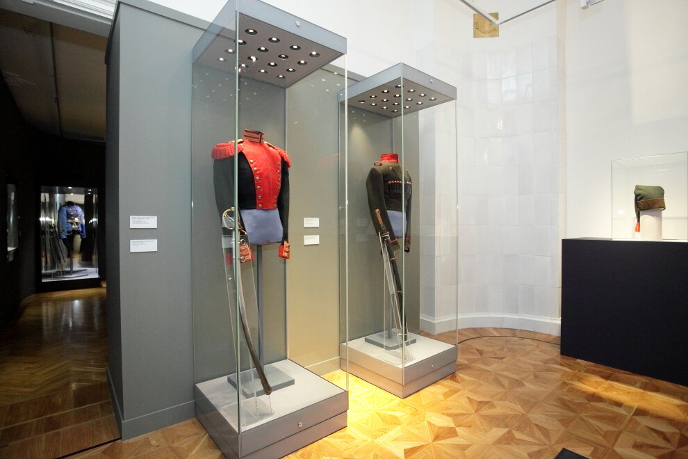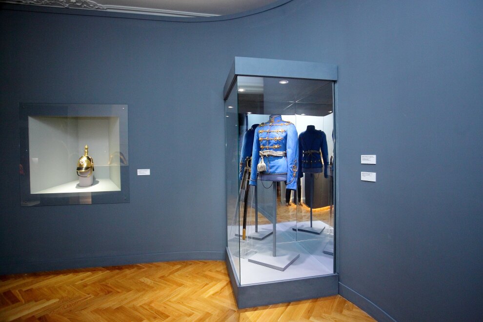 Сегодня в экспозиции можно увидеть военные реликвии и обмундирование Лейб-гвардии конного полка, Лейб-Кирасирского Его Императорского Высочества Наследника Цесаревича полка, Лейб-гвардии Павловского полка, Лейб-гвардии Преображенского полка, 68-го Лейб-пехотного Бородинского Его Величества полка, Нижегородского драгунского полка, Роты Дворцовых гренадер и другие образцы оружия из частных коллекций. Реставрация бесценной коллекции проводилась специалистами трех ведущих организаций ГосНИИР, ВХНРЦ им. И.Э. Грабаря и РОСИЗО при поддержке и активном участии Российского военно-исторического общества.