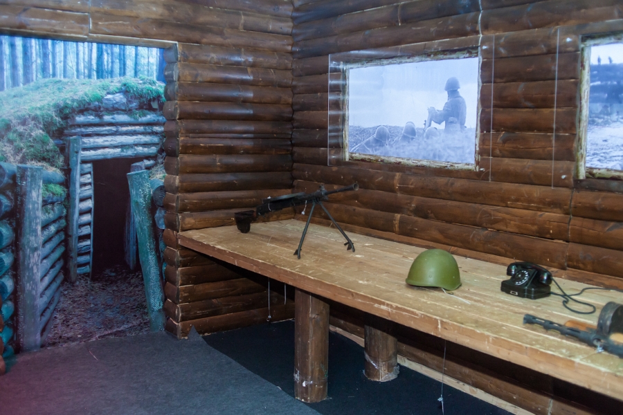 Экспозиция включает шесть тематических залов с интерактивными элементами: «Панфиловцы», «Цена войны», «Массовый героизм», «Кто лучше воевал», «Кинозал», «Победа». Путеводителем здесь служит книга Владимира Мединского «Война».