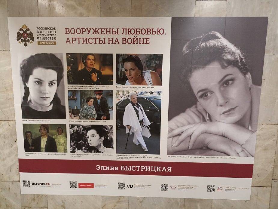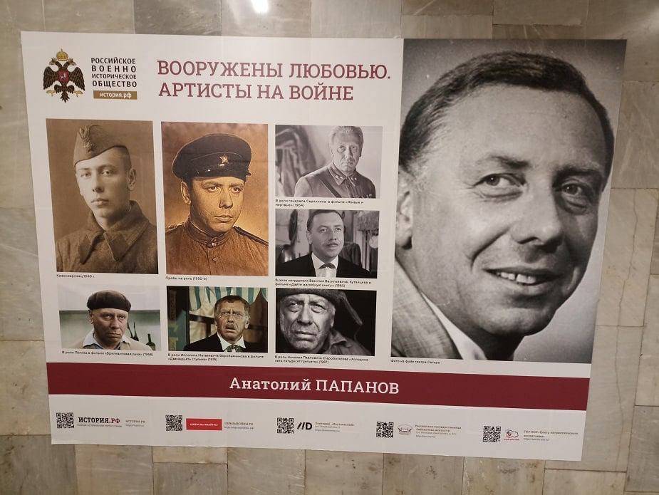 Множество отзывов поступает от жителей региона о фотовыставке «Вооружены любовью. Артисты на войне», открытой в Новосибирском метро в переходе со станции Красный проспект на станцию Сибирская. Выставка рассказывает о судьбах актеров-фронтовиков: Евгения Весника, Владимира Басова, Сергея Бондарчука, Михаила Пуговкина, Элины Быстрицкой, Анатолия Папанова, Зиновия Гердта, Георгия Юматова, Иннокентия Смоктуновского, Владимира Этуша и Николая Гринько.