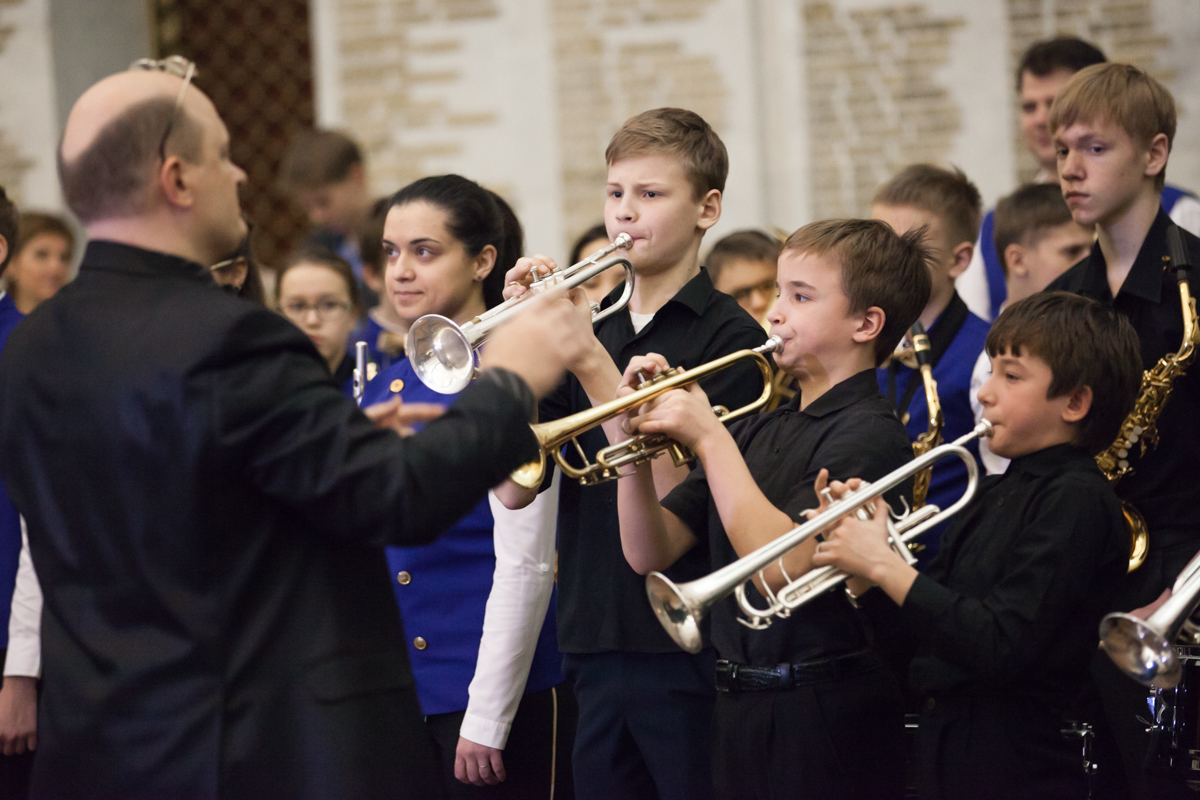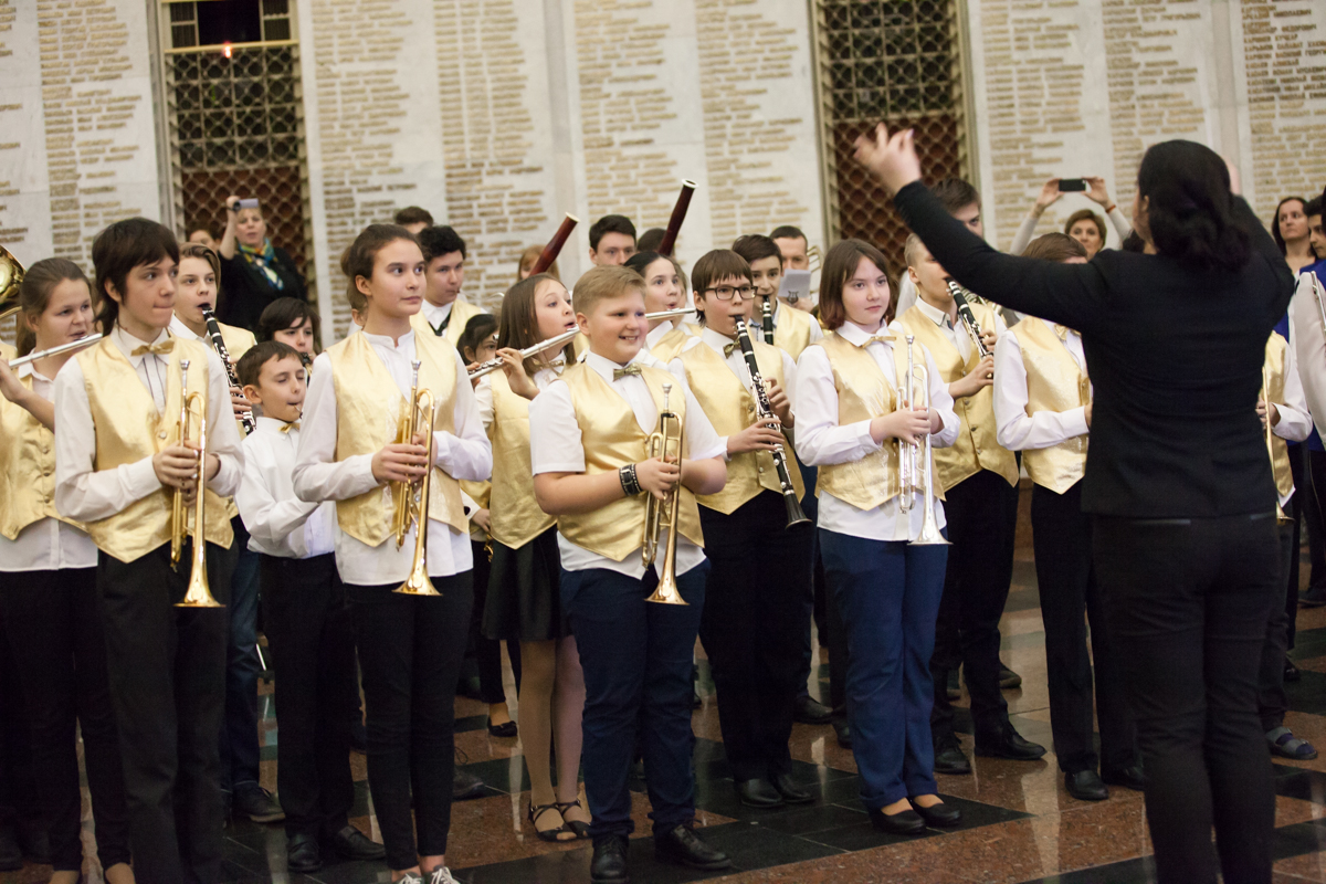 Юные музыканты исполнили на мероприятии такие известные произведения как: «Смуглянка», «Темная ночь», «Катюша» и многие другие не менее узнаваемые мелодии эпохи Великой Отечественной войны. В выступлении также приняли участие взрослые исполнители — солисты Академического ансамбля песни и пляски Российской Армии имени А.В. Александрова и Государственный духовой оркестр России. Вместе они почтили память музыкантов Государственного духового оркестра СССР, ушедших в ополчение и погибших 75 лет назад в Битве за Москву, а также всех жертв авиакатастрофы, произошедшей 25 декабря прошлого года в районе г. Сочи.