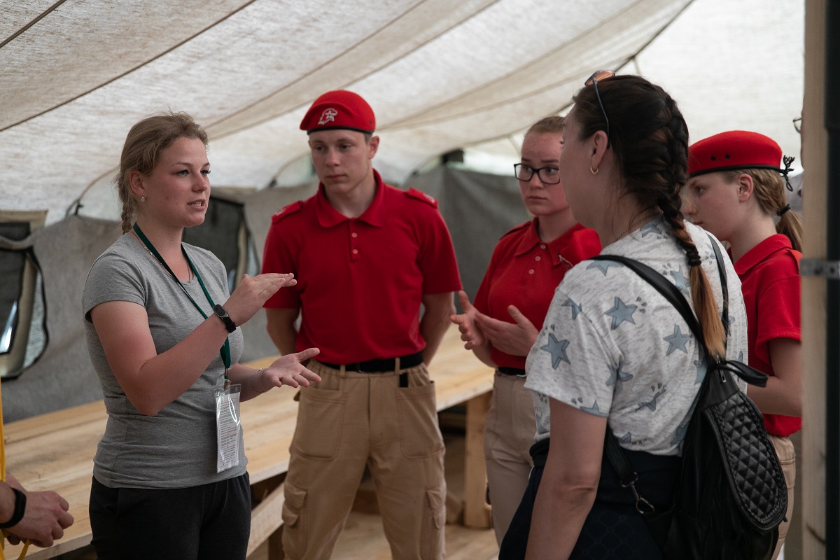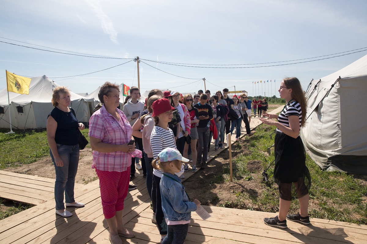 Посетителей встречают сотрудницы штаба экспедиции Юлия Шипилова и Дарья Воробьева. Девушки рассказывают гостям об истории Ржевской битвы, смысле поисковой работы и жизни лагеря. Дети посещают полевой музей, где можно потрогать самые настоящие военные артефакты, буквально вчера поднятые с полей былых сражений.