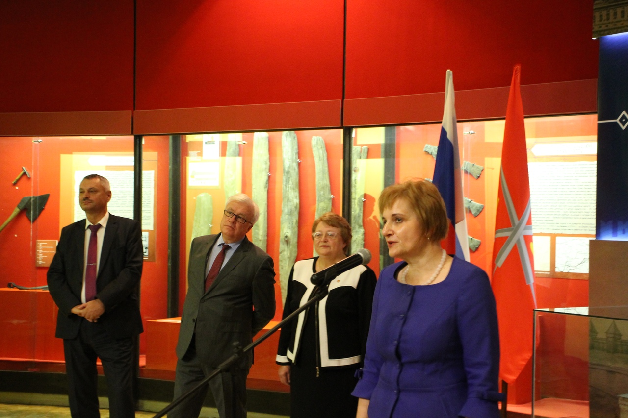 Выставку открыла директор Тульского государственного музея оружия, Почетный гражданин Тульской области Надежда Калугина, которая рассказала о содержании выставочной экспозиции и обратилась с сердечными словами приветствия и благодарности коллегам за конструктивное сотрудничество и плодотворную работу.