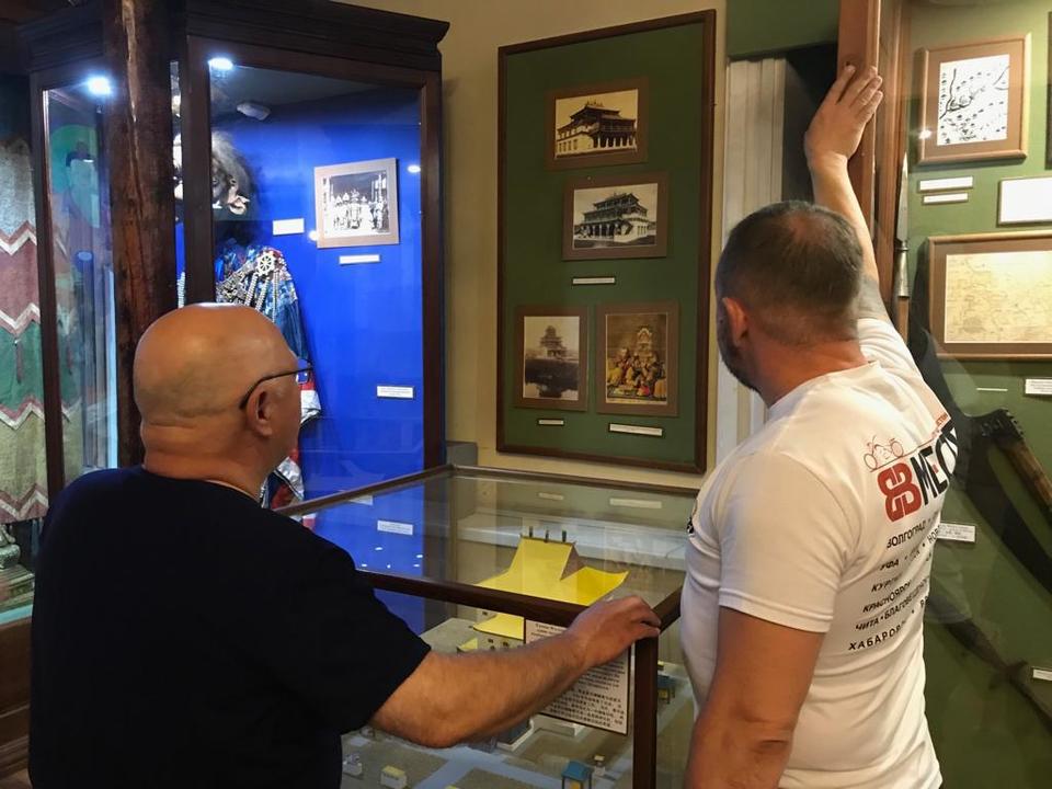Участники мотопробега уже побывали в нескольких городах России – в том числе, в Саратове, Уфе, Новосибирске, Красноярске, Иркутске, Улан-Удэ и вот теперь в Чите. Один из байкеров посетил Забайкальский краевой краеведческой музей, встретился с его руководителем Виктором Колосовым и председателем Забайкальского отделения Российского военно-исторического общества Еленой Михайловой.