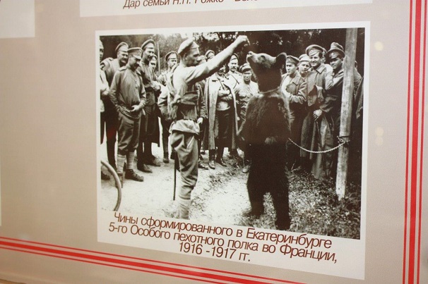 - Неотъемлемой частью истории Русского экспедиционного корпуса стал медведь по кличке Мишка, который пережил все тяготы и лишения военного времени вместе с солдатами. Маленького медвежонка в качестве живого напоминания о Родине, купили офицеры на Екатеринбургском рынке за 8 рублей. Он не только сопровождал наших солдат в походе, но и был поставлен на довольствие и даже стал одним из первых пострадавших от газовой атаки - рассказал секретарь Свердловского регионального отделения Российского военно-исторического общества Никита Крутаков.