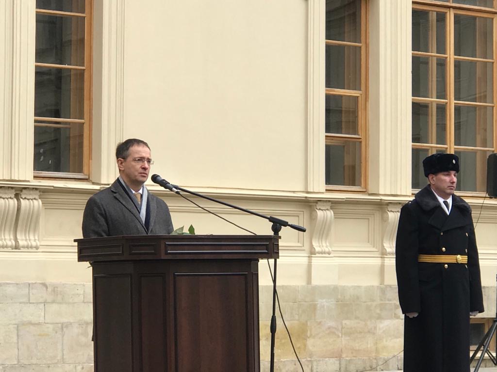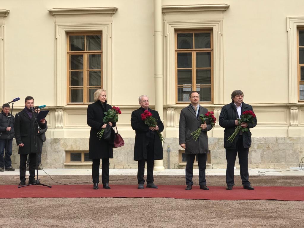 В церемонии приняли участие председатель Российского военно-исторического общества Владимир Мединский, председатель Совета отделения Российского исторического общества в Санкт-Петербурге Михаил Пиотровский, директор ГМЗ «Гатчина» Василий Панкратов, директор ГМЗ «Царское село» Ольга Таратынова.