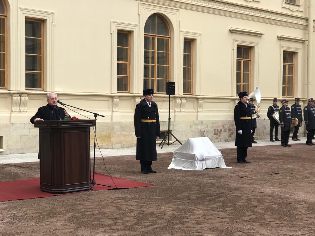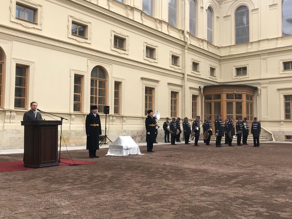Торжественное открытие закладного камня в основание памятника императору Александру III прошло во дворе Арсенального каре Большого Гатчинского дворца в Ленинградской области во вторник.