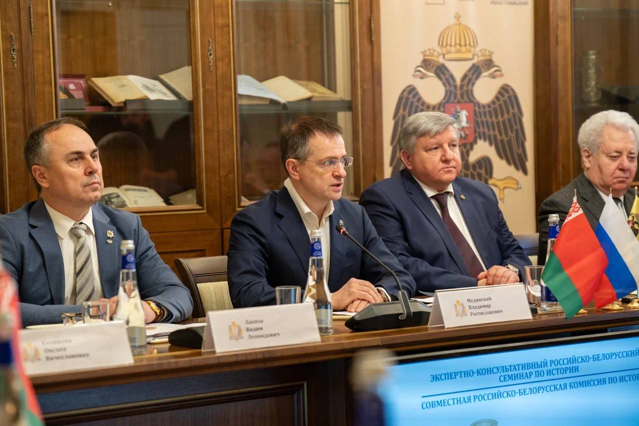 Мероприятие открыл помощник Президента Российской Федерации, Председатель Межведомственной комиссии по историческому просвещению, Председатель РВИО Владимир Мединский. Он отметил, что Россия и Беларусь должны синхронизировать подходы к преподаванию истории.