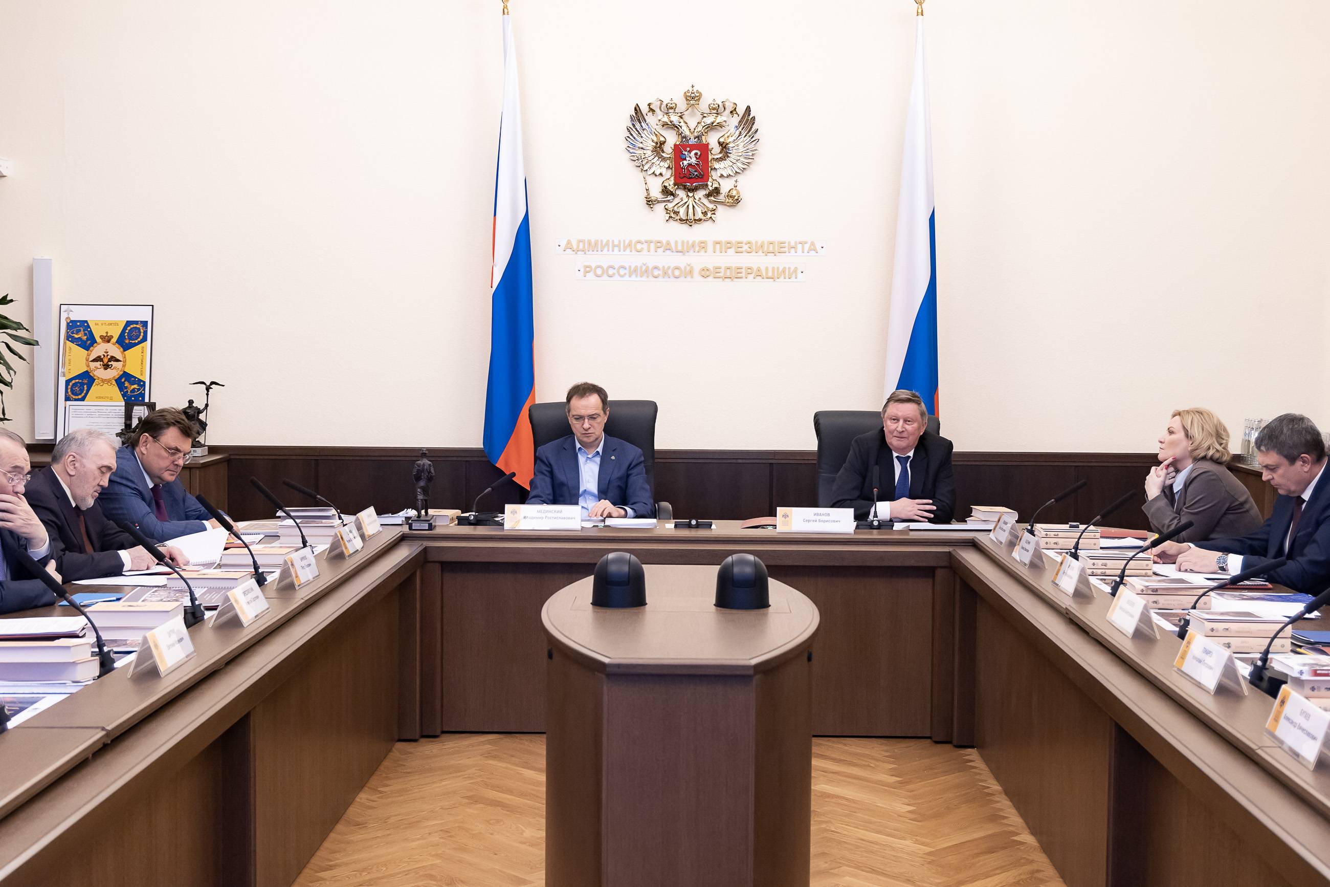 Сегодня состоялось заседание Попечительского Совета Российского военно-исторического общества. Открыл заседание Председатель Совета, специальный представитель Президента РФ по вопросам природоохранной деятельности, экологии и транспорта Сергей Иванов. С основным докладом выступил помощник Президента РФ, Председатель РВИО Владимир Мединский.