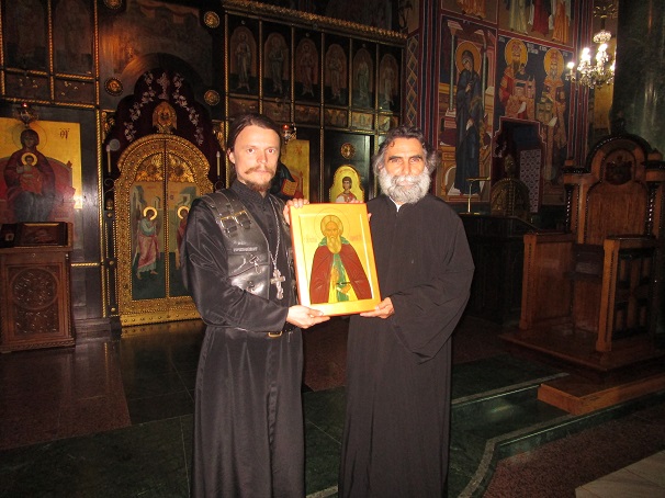 Мотопаломники посетили столицу Сербии – Белград, доставив икону Преподобного Сергия Радонежского, которую передала братия Троице-Сергиевой Лавры. Образ с благодарностью принял ключарь собора святого Саввы отец протоиерей Радивой Панич. Протоиерей показал реликвии собора – русские иконы преподобного Серафима Саровского – дар Святейшего Патриарха Алексия II и образ Казанской Богородицы – дар Троице-Сергиевой Лавры, переданный Белграду в 1999 году в трагические дни бомбардировки города. В подарок Троице-Сергиевой Лавре ключарь собора святого Саввы передал образ святителя Саввы Сербского в драгоценной ризе. Участники акции также посетили в Белграде устанавливаемый Российским военно-историческим обществом памятник Николаю II, открытие которого планируется в ноябре этого года с участием Святейшего Патриарха Московского и всея Руси Кирилла.