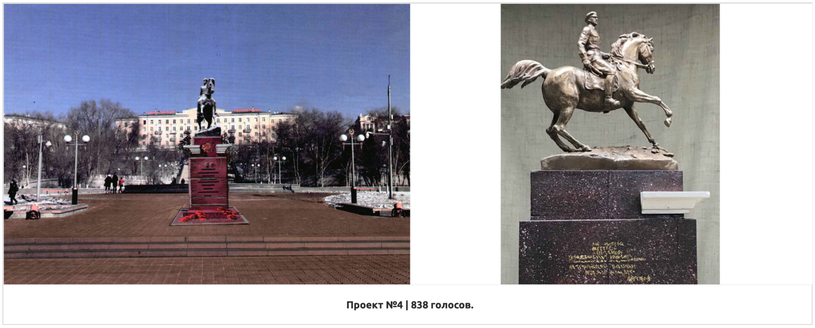 Завершилось народное интернет-голосование на лучшее архитектурно-художественное решение памятника Маршалу Советского Союза, Дважды Герою Советского Союза Константину Рокоссовскому. Наибольшее количество голосов набрала работа скульптора Матвея Макушкина. Памятник планируется установить в Улан-Удэ.