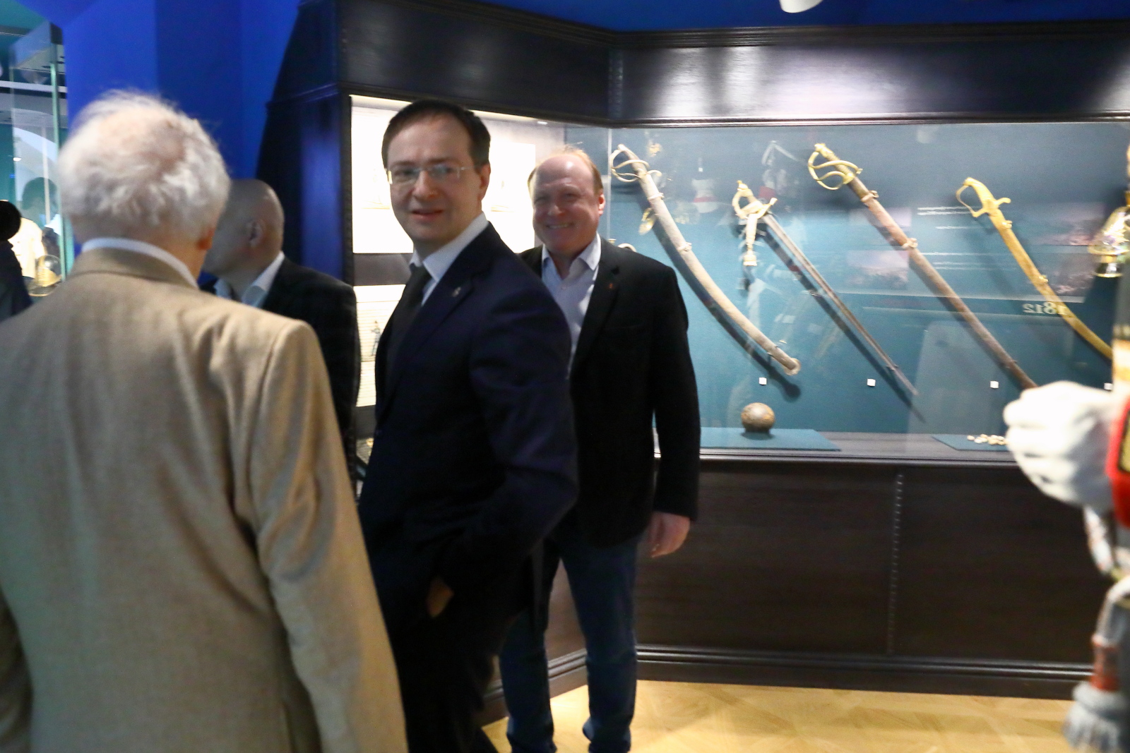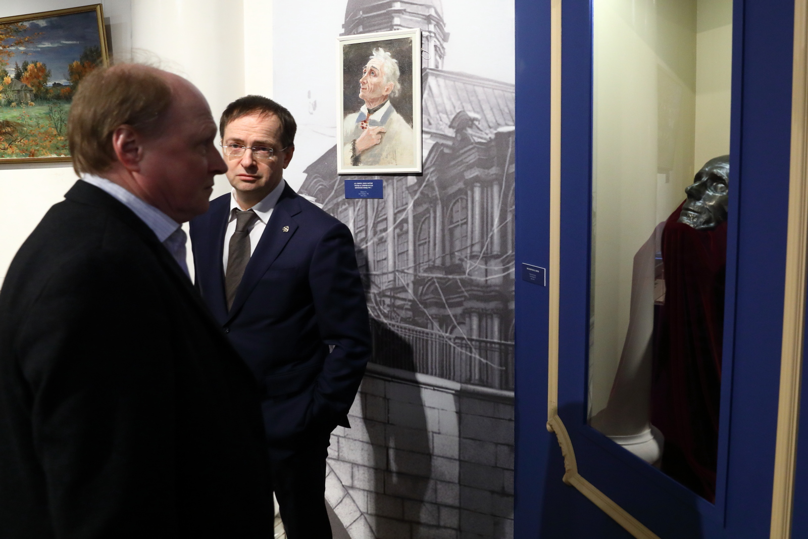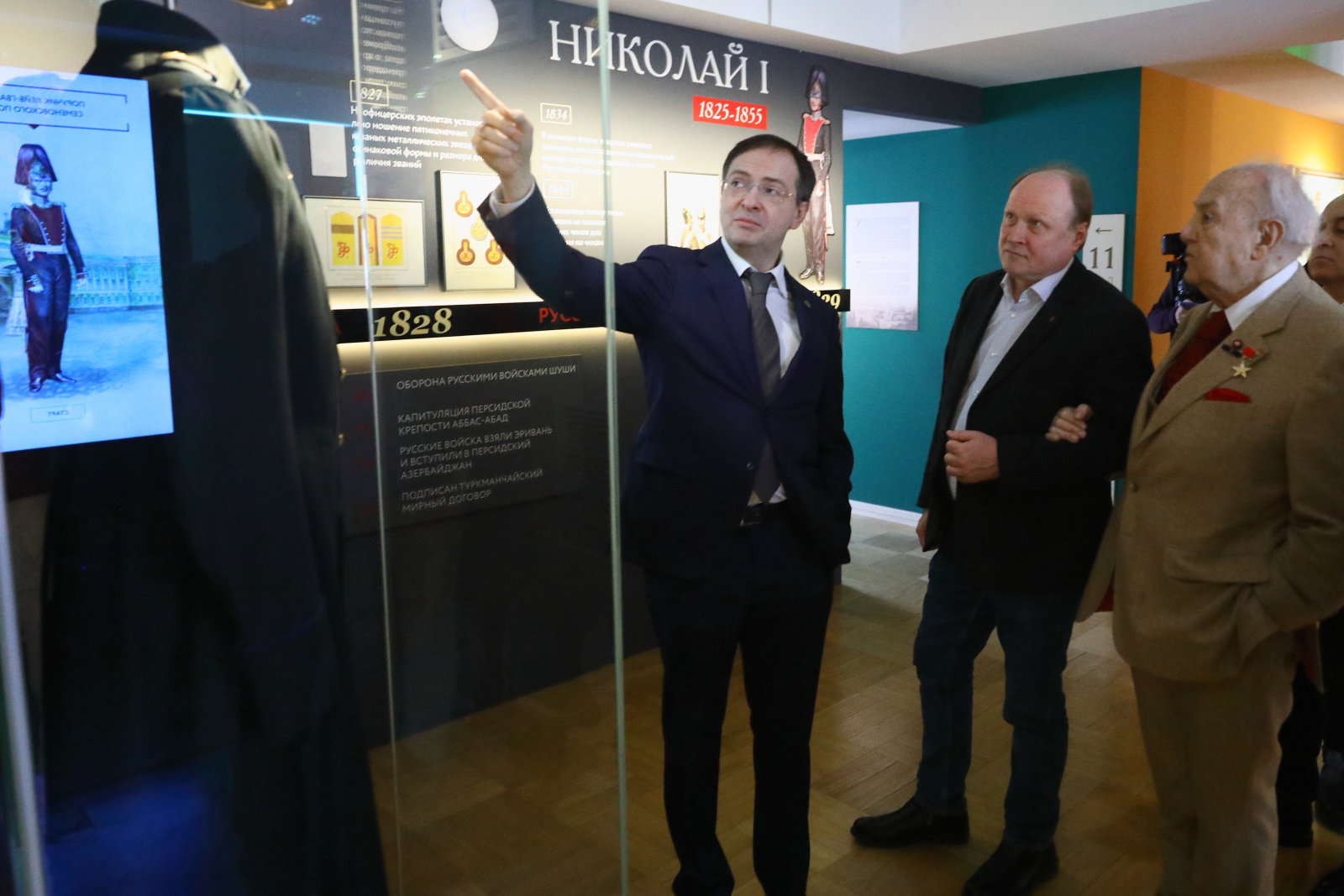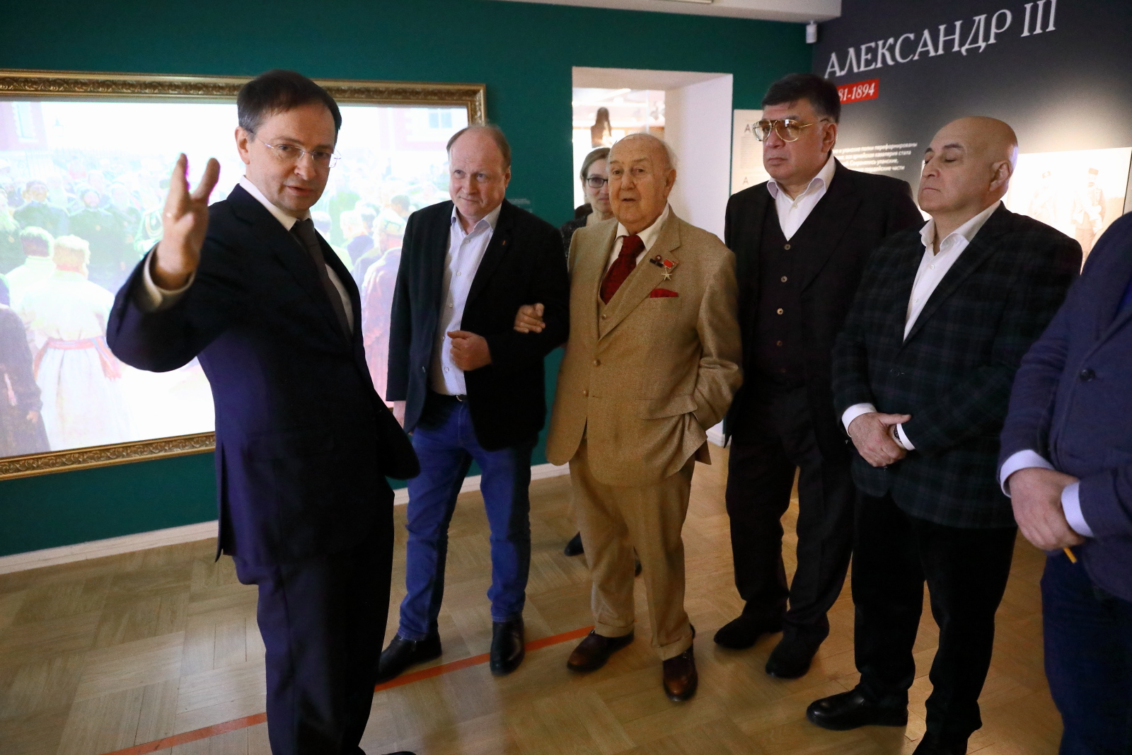 Зураб Церетели, Владимир Толстой и Василий Церетели поблагодарили Владимира Мединского и сотрудников музея за создание интересной экспозиции и оставили записи в книге почетных гостей.