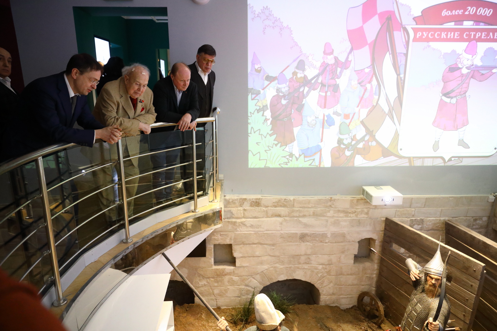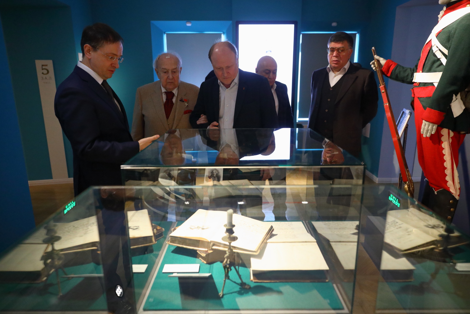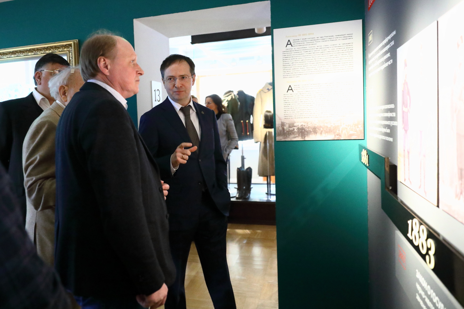 Зураб Церетели, Владимир Толстой и Василий Церетели поблагодарили Владимира Мединского и сотрудников музея за создание интересной экспозиции и оставили записи в книге почетных гостей.