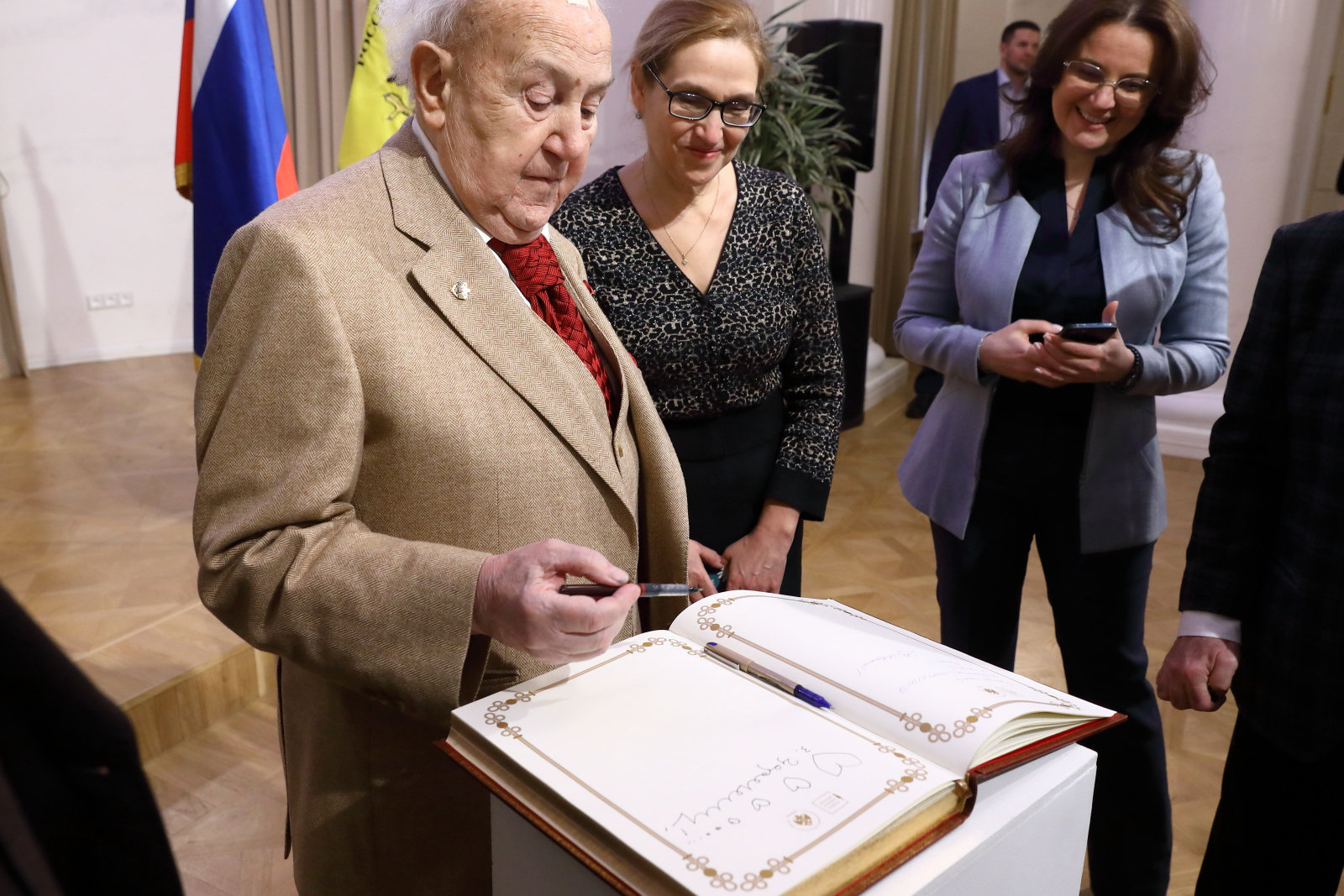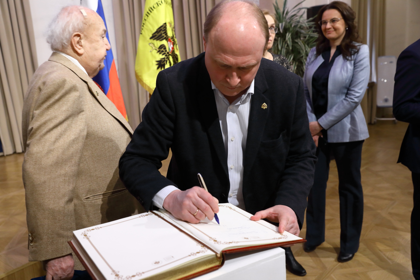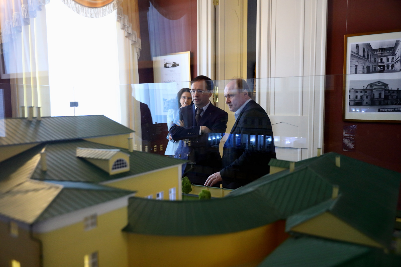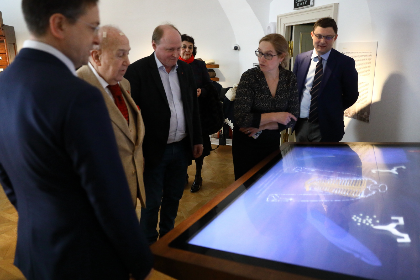 Зураб Церетели, Владимир Толстой и Василий Церетели поблагодарили Владимира Мединского и сотрудников музея за создание интересной экспозиции и оставили записи в книге почетных гостей.