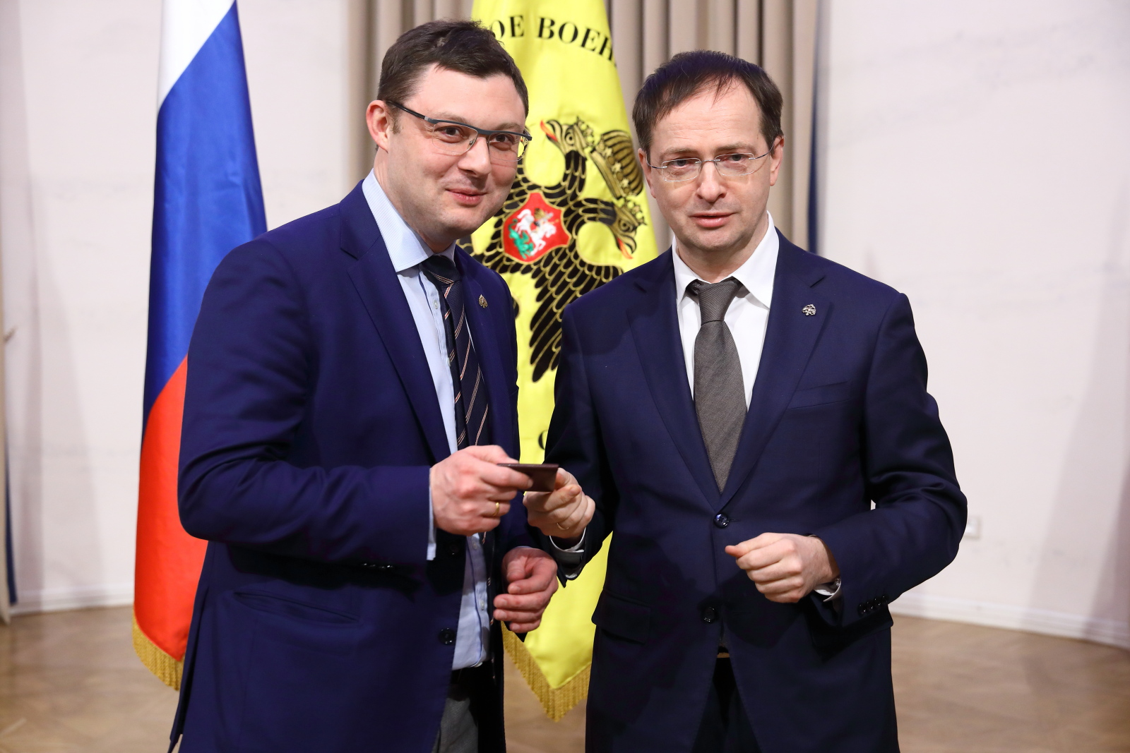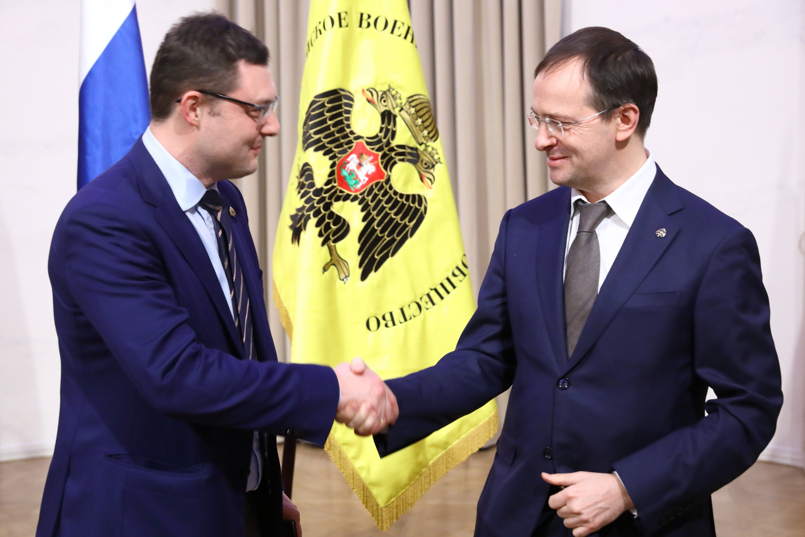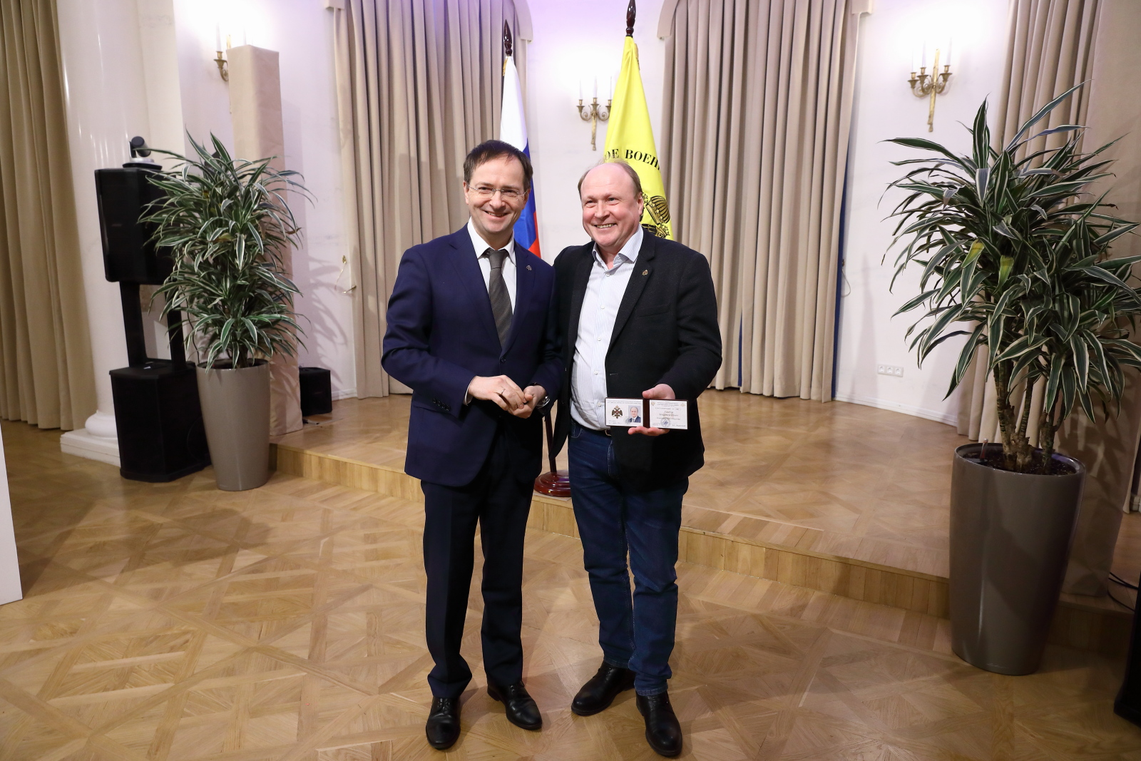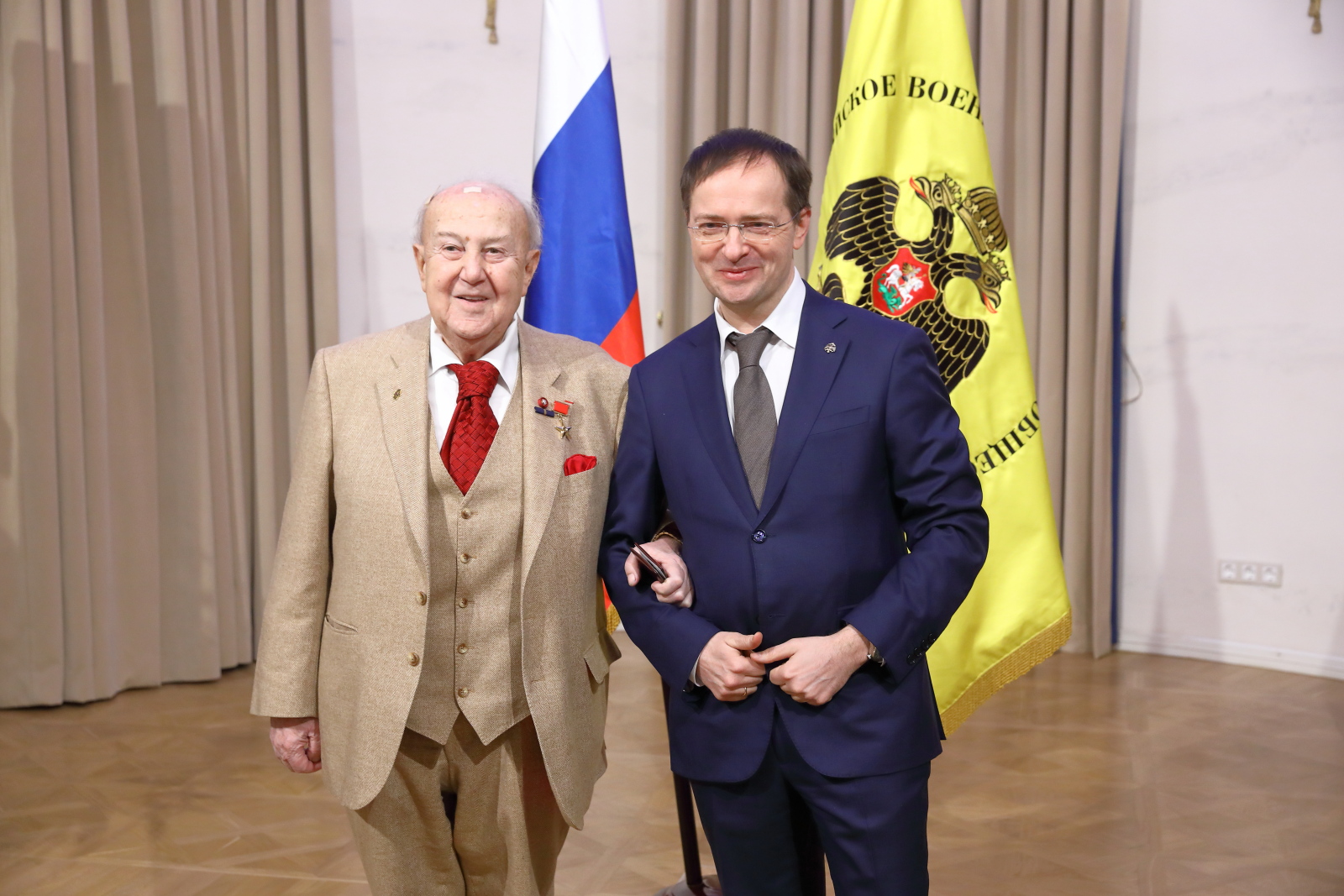 Помощник Президента РФ, Председатель Российского военно-исторического общества Владимир Мединский вручил билеты и знаки почетных членов РВИО Президенту Российской академии художеств, Народному художнику СССР Зурабу Церетели, Советнику Президента РФ Владимиру Толстому и Исполнительному директору Московского музея современного искусства, вице-президенту Российской академии художеств Василию Церетели.