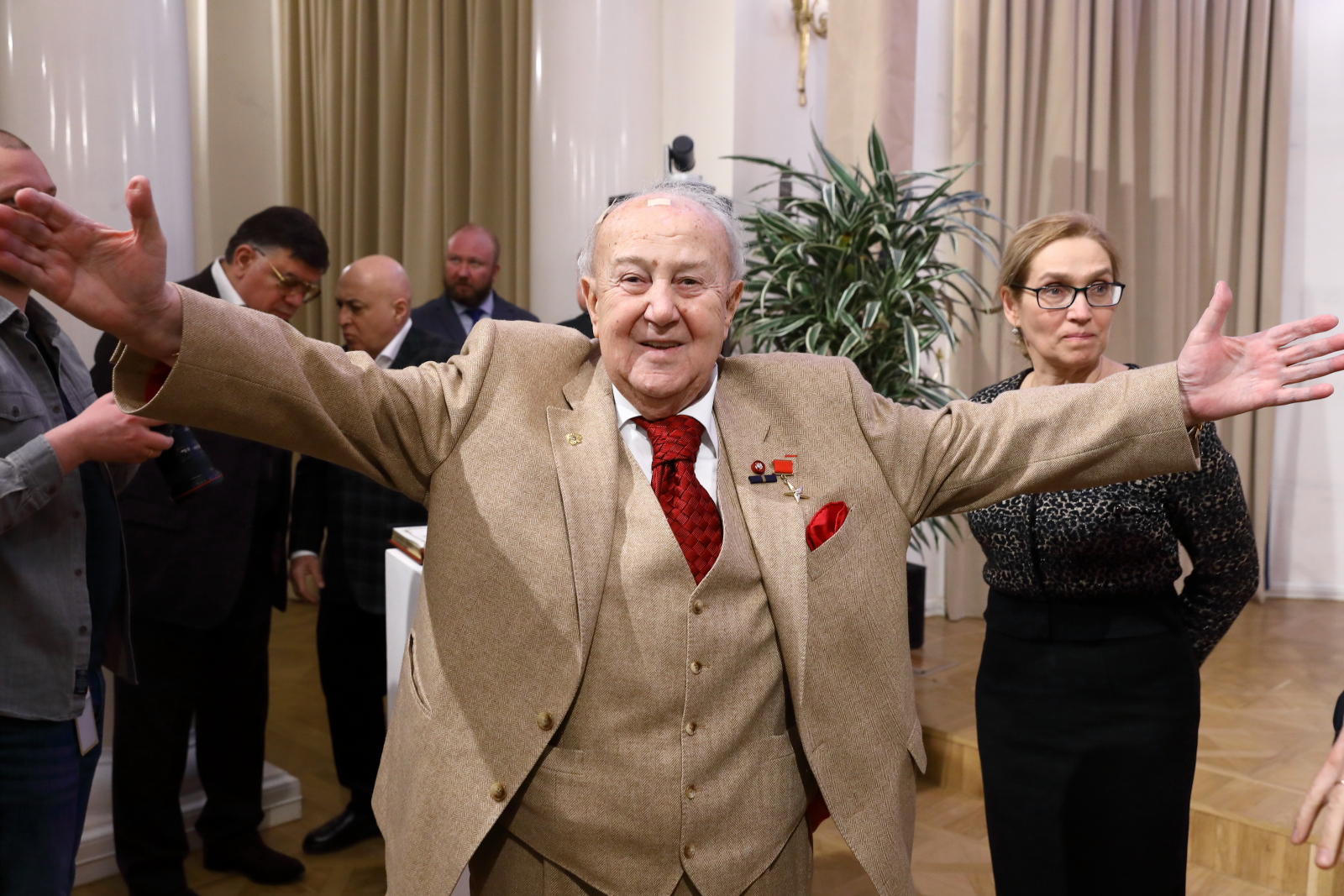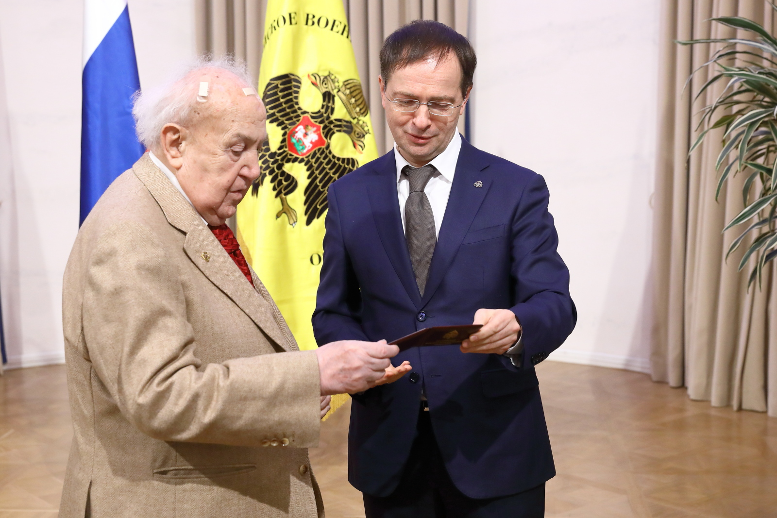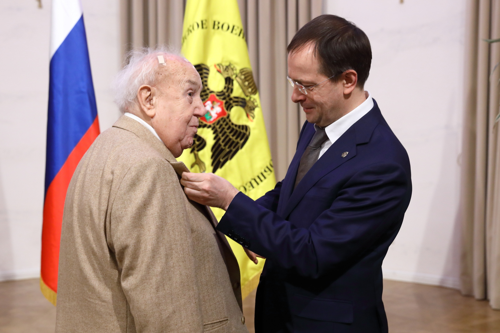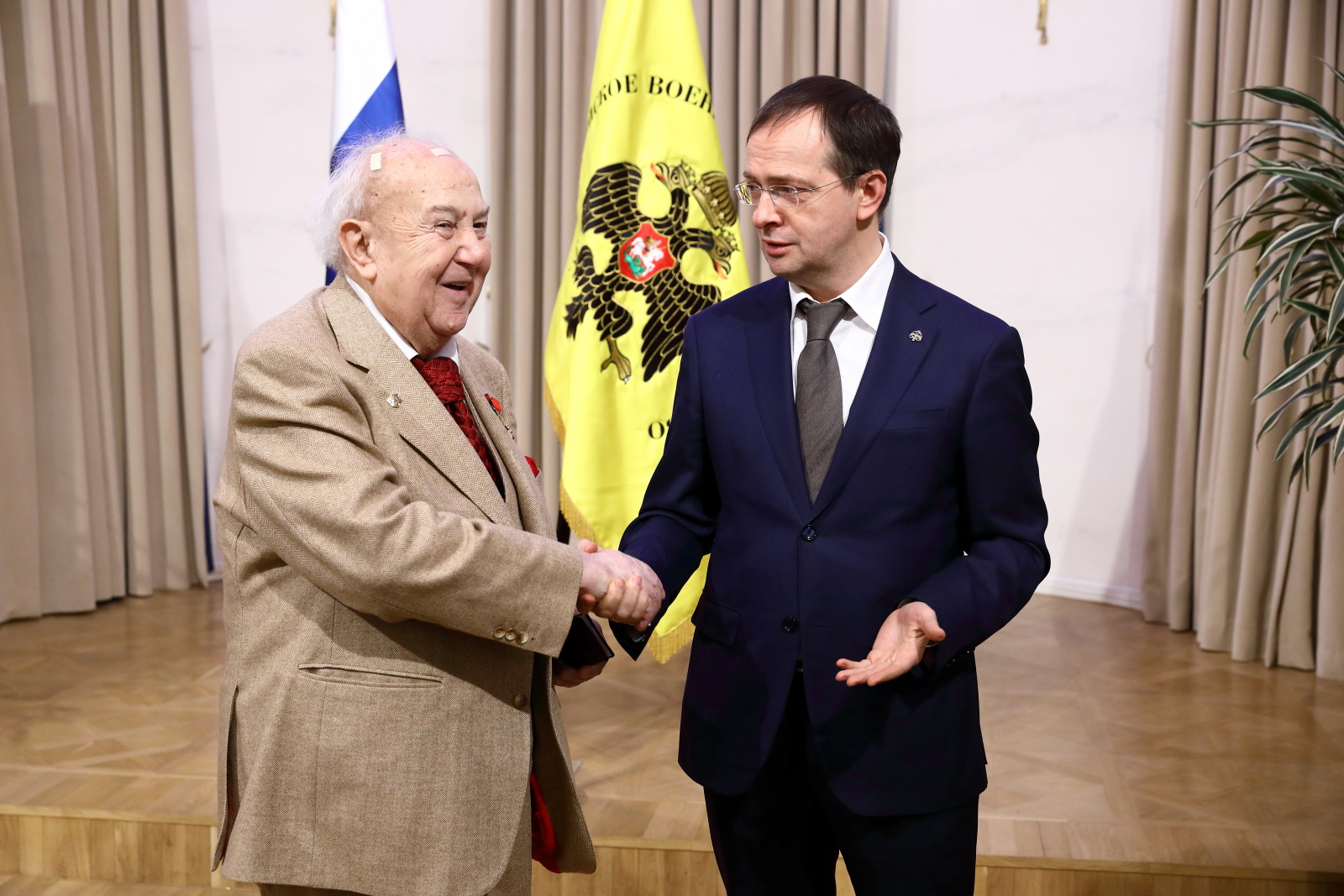 Помощник Президента РФ, Председатель Российского военно-исторического общества Владимир Мединский вручил билеты и знаки почетных членов РВИО Президенту Российской академии художеств, Народному художнику СССР Зурабу Церетели, Советнику Президента РФ Владимиру Толстому и Исполнительному директору Московского музея современного искусства, вице-президенту Российской академии художеств Василию Церетели.